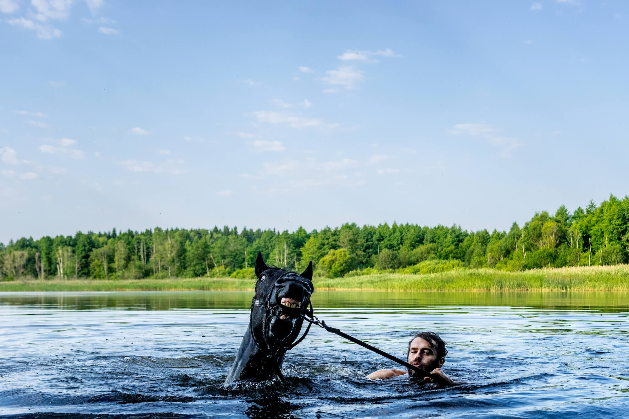 — Як його у воза? Він же красивий, — кажу. Кінь тоді витягує вперед губи, ніби хоче цілуватись, але я не підходжу.