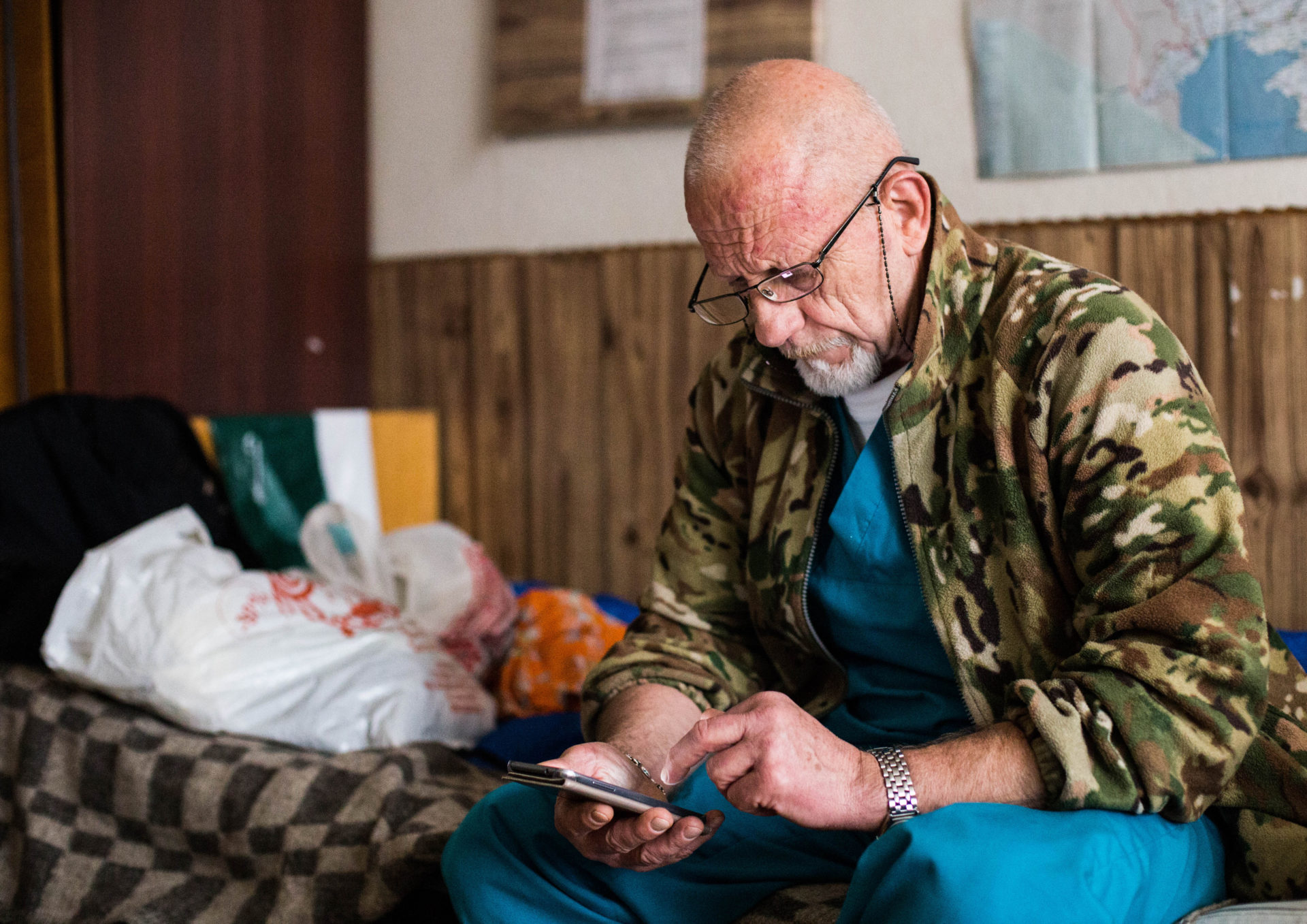— Тут нема доступної медицини, — до розмови приєднується хірург Юра. Він на своїй першій ротації у ПДМШ. — Лікарів мало. Мабуть, у тому полягає моя місія: допомогти. Довго, звісно, я тут сидіти не буду. У мене робота, діти, жінка. Але місяць зі свого життя вирвати можу. Жити в цьому підвалі, в цих умовах… Хоча я звик до комфорту. Дружина не знає, що я тут. Бо нащо? Щоб вона не спала? У новинах весь час «Попасна-Попасна».